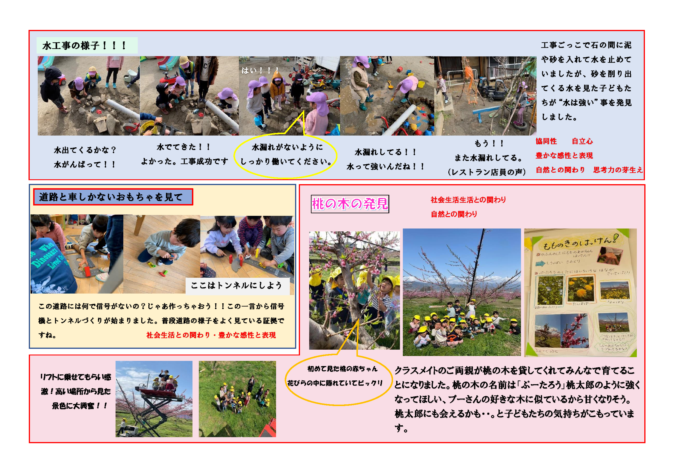 園児の人間性や能力を開花させ、発達させていくと同時に自立心を育むこと。